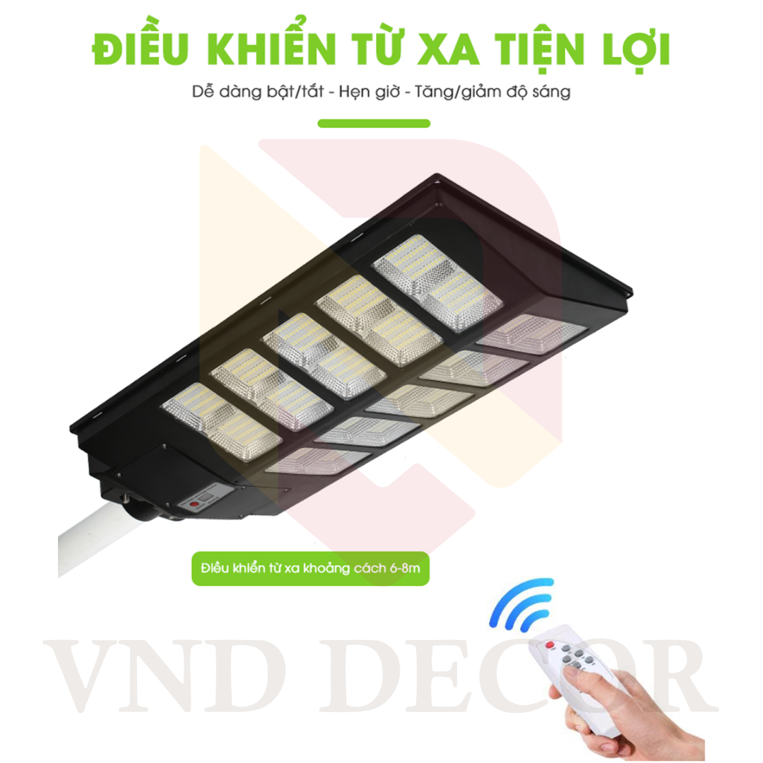 - Điều khiển đèn đường năng lượng mặt trời 300W từ xa bằng Remote dễ dàng với khoảng cách từ 6-8 mét, một số chức năng đơn giản như: bật/tắt – Hẹn giờ – Tăng/Giảm độ sáng tiện lợi.