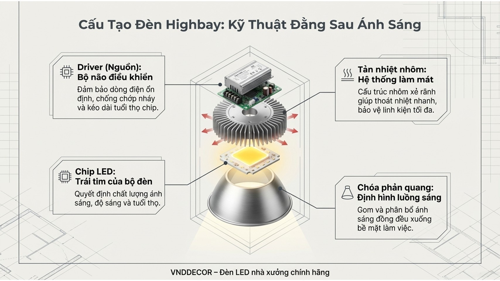 Cấu Tạo Cơ Bản Của Đèn Highbay