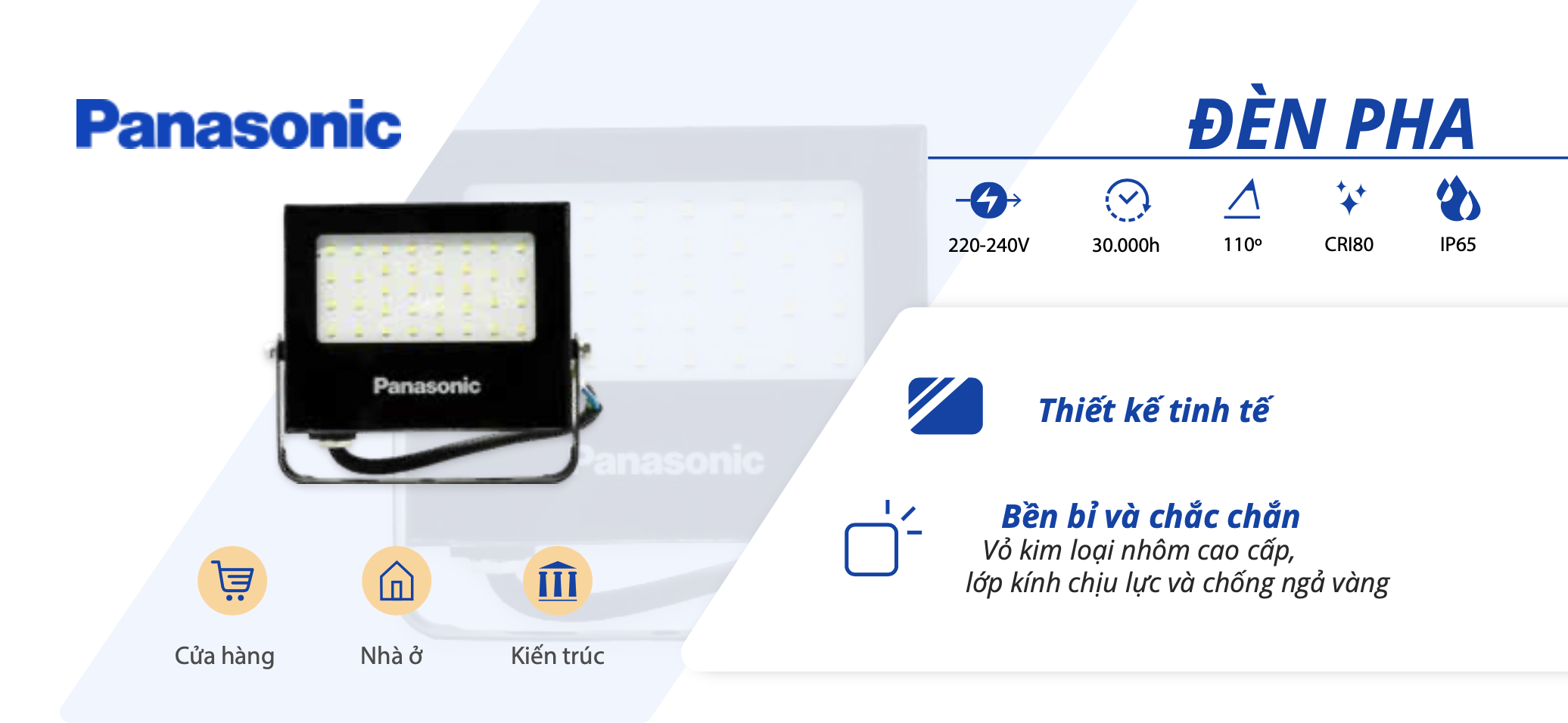 Đèn LED pha 2G Panasonic sử dụng phù hợp để chiếu sáng cho mặt tiền kiến trúc, khu dân cư, sân vườn, sân thể thao mini, khu công nghiệp. Đèn led pha là sản phẩm có khả năng chiếu sáng xa và chiếu sáng với cường độ cao. Chúng thích hợp để: