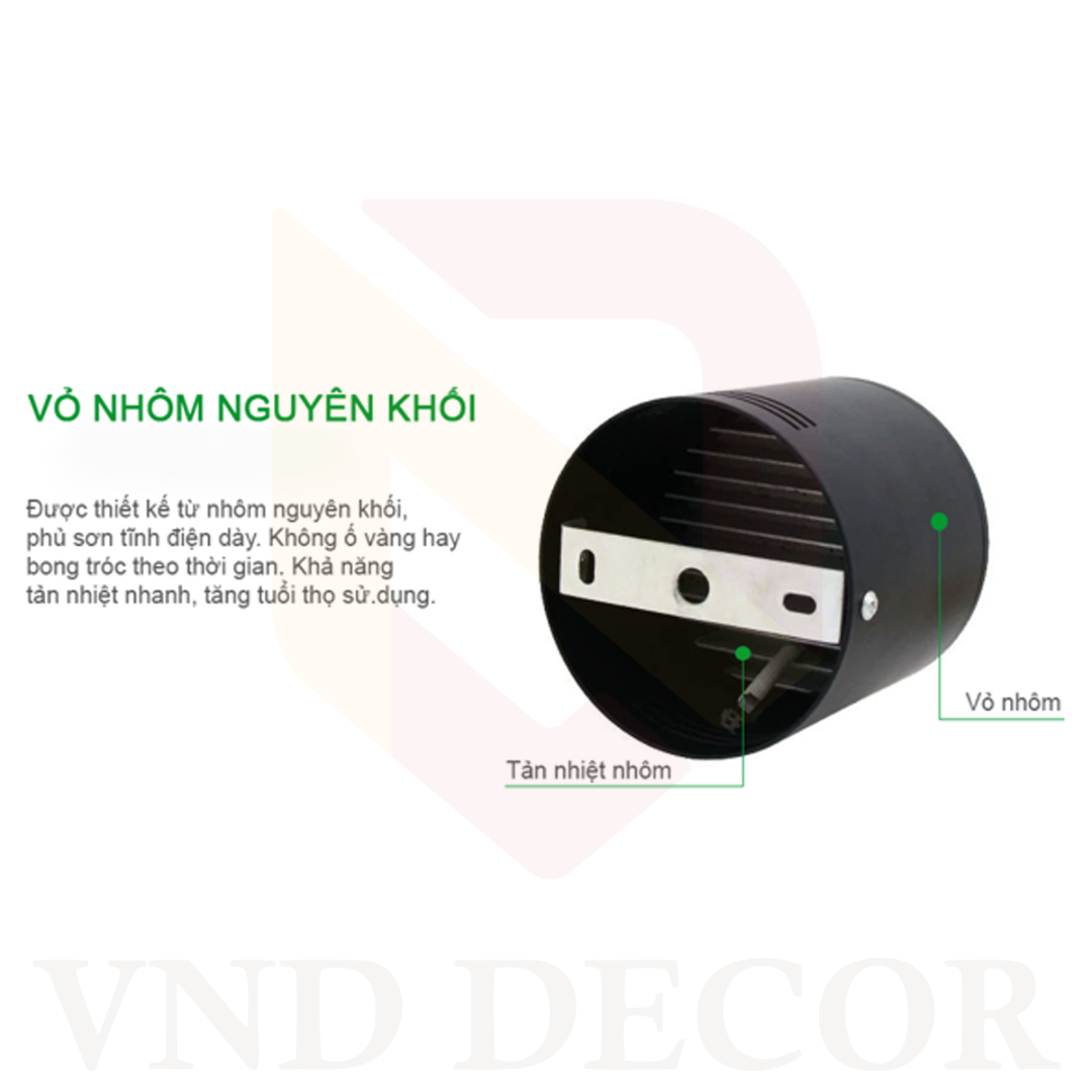 Đèn Ống Bơ được thiết kế từ nhôm nguyên khối, phủ sơn tĩnh điện dày. Không ố vàng hay bong tróc theo thời gian. Khả năng tản nhiệt nhanh, tăng tuổi thọ sử dụng.