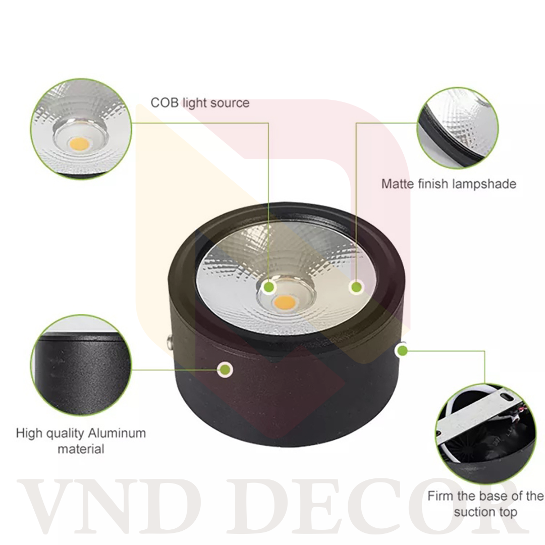 Đèn Ống Bơ Ốp Nổi 12W COB Epistar với thiết kế hình lon trụ dài tròn, lắp đặt ốp nổi trên trần và có cấu tạo nguyên khối cực kỳ thẩm mỹ, phù hợp cho những khu vực nghệ thuật, chiếu sáng. Nguồn sáng chiếu điểm với góc chiếu nhỏ chỉ 30 độ giúp cho việc định hướng ánh sáng tốt hơn.