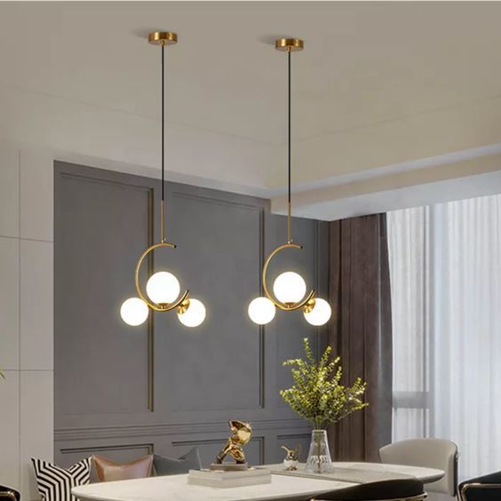 Đèn trang trí hiện đại mang lại vẻ đẹp tối giản và sự thanh lịch. Chọn các mẫu đèn hiện đại phù hợp với không gian ăn, tạo nên một môi trường sống động và hiện đại.