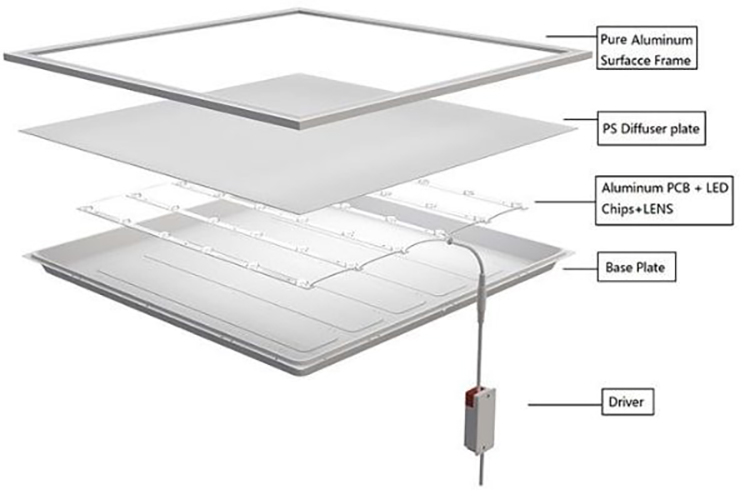 Bộ khuếch tán ánh sáng: Với kích thướng khá lớn 600×600 nên đèn led panel dạng này cần sử dụng bộ khuếch tán ánh sáng để đạt được độ phủ ánh sáng rộng, lượng ánh sáng phát ra đồng đều và chất lượng ánh sáng tốt. Loại chất liệu được sử dụng cho đèn led panel chủ yếu là PMMA.