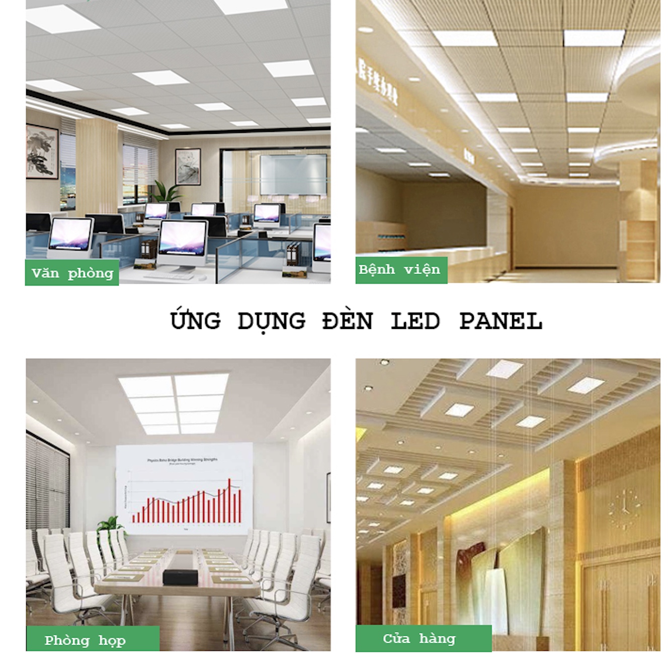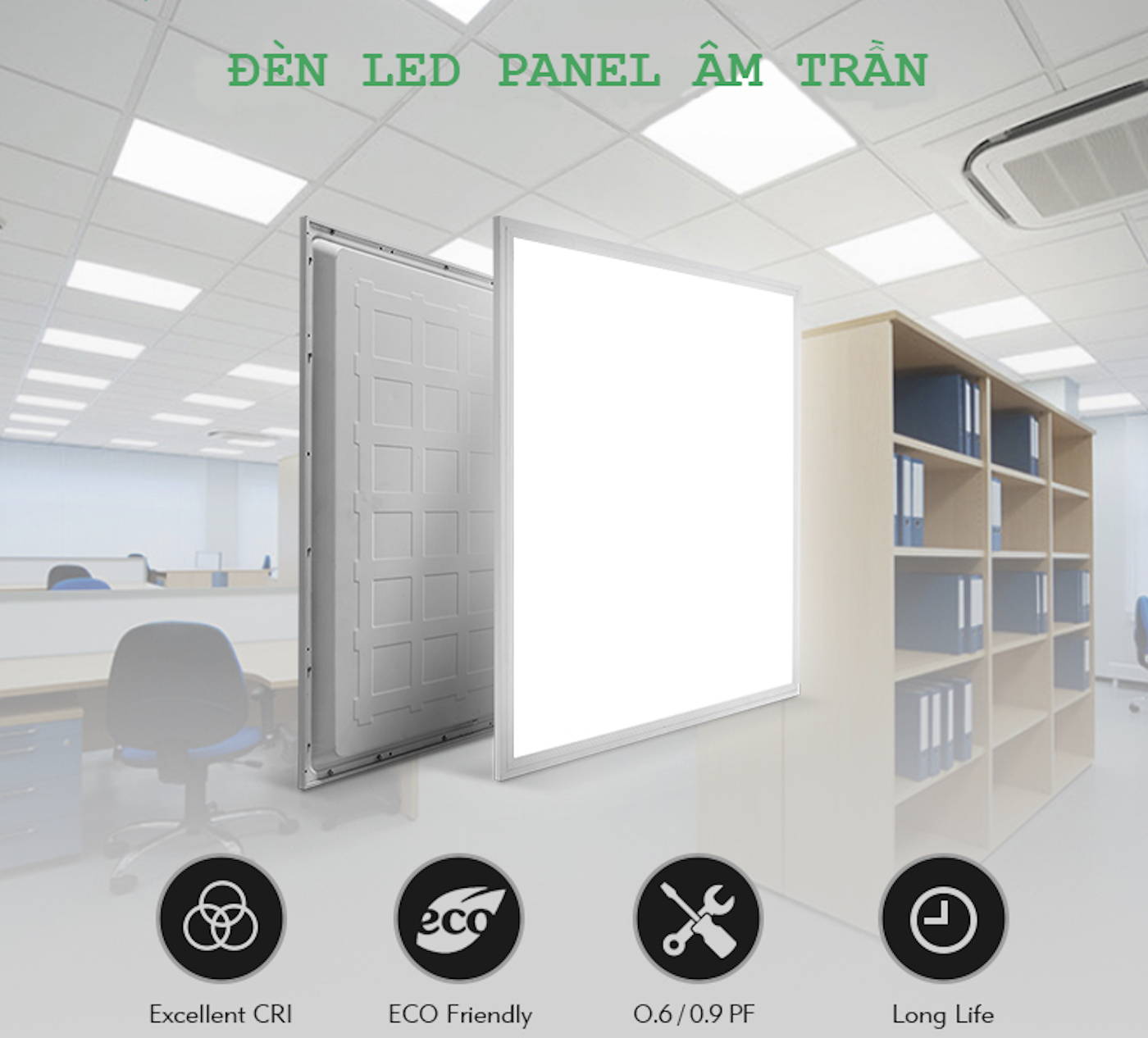 Đèn LED panel thả trần: là loại đèn led hộp thả trần hay đèn trong nhà khi bật không cần thời gian khởi động, ánh sáng không bị nhấp nháy, không tạo ra âm thanh ồn ào như các loại đèn chiếu sáng thông thường