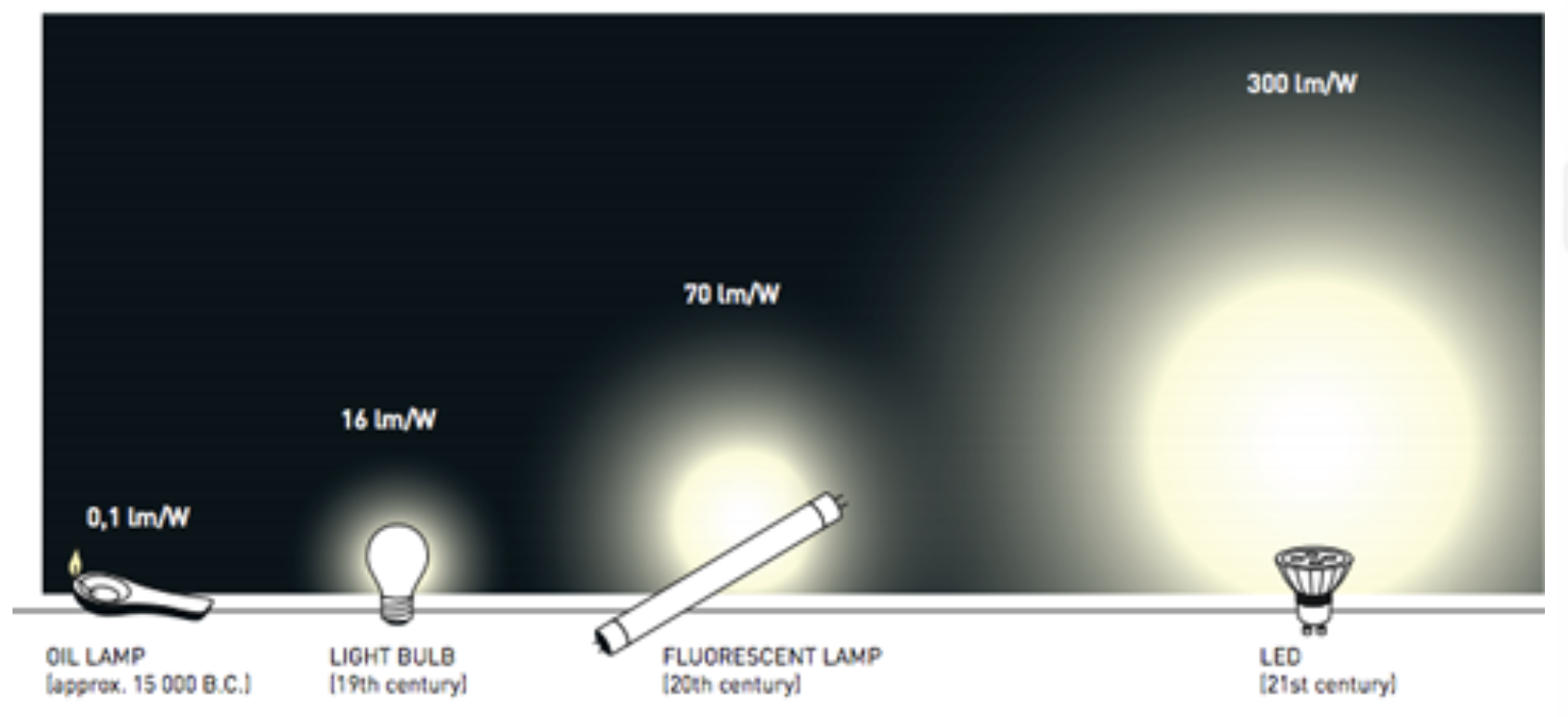 - Đèn LED nhà xưởng: 22,000 lm / 200W = 110 lm/W.