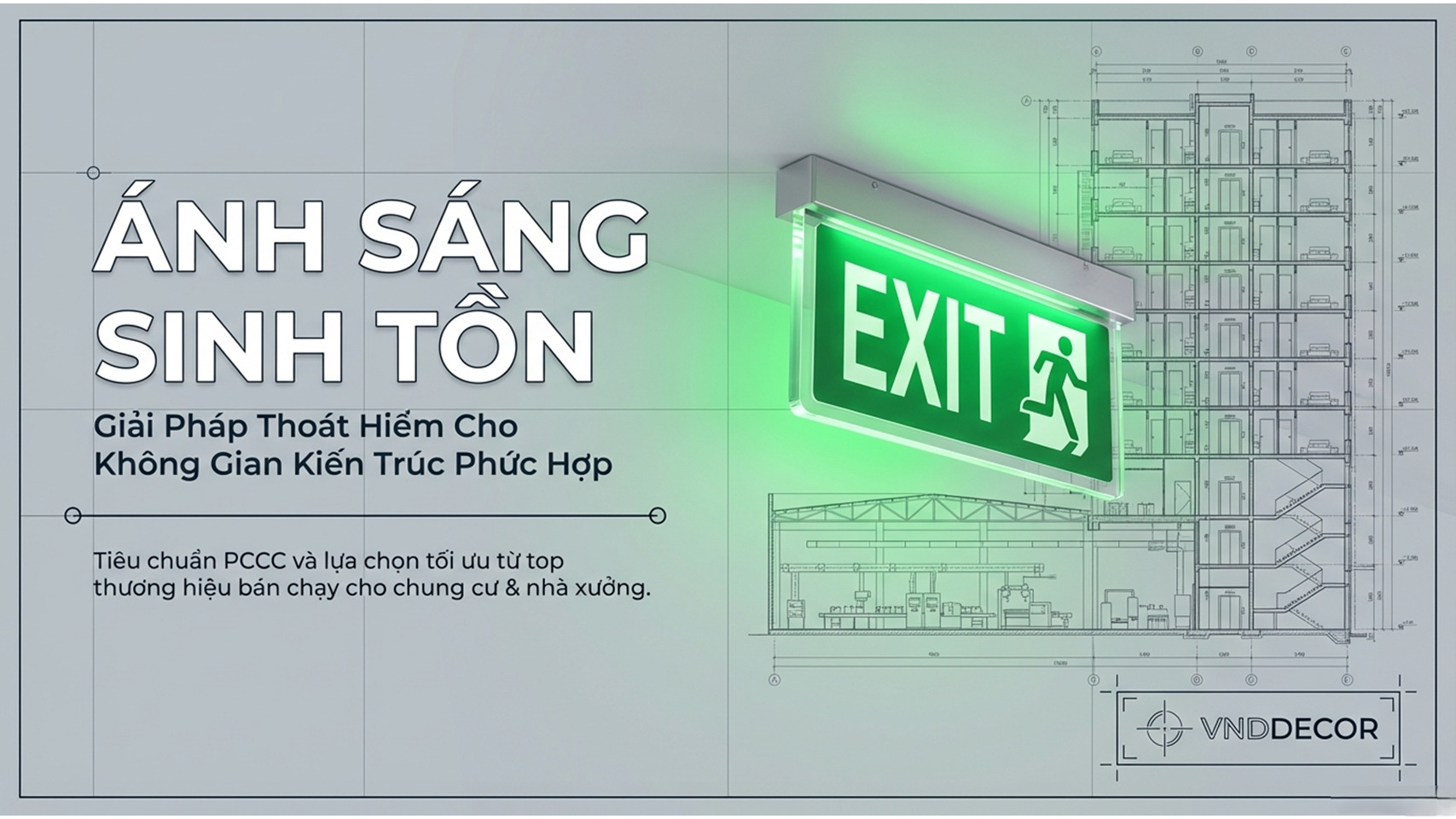 Ngoài đèn Exit, nhiều công trình còn lắp thêm đèn sạc khẩn cấp để chiếu sáng khu vực thoát hiểm.